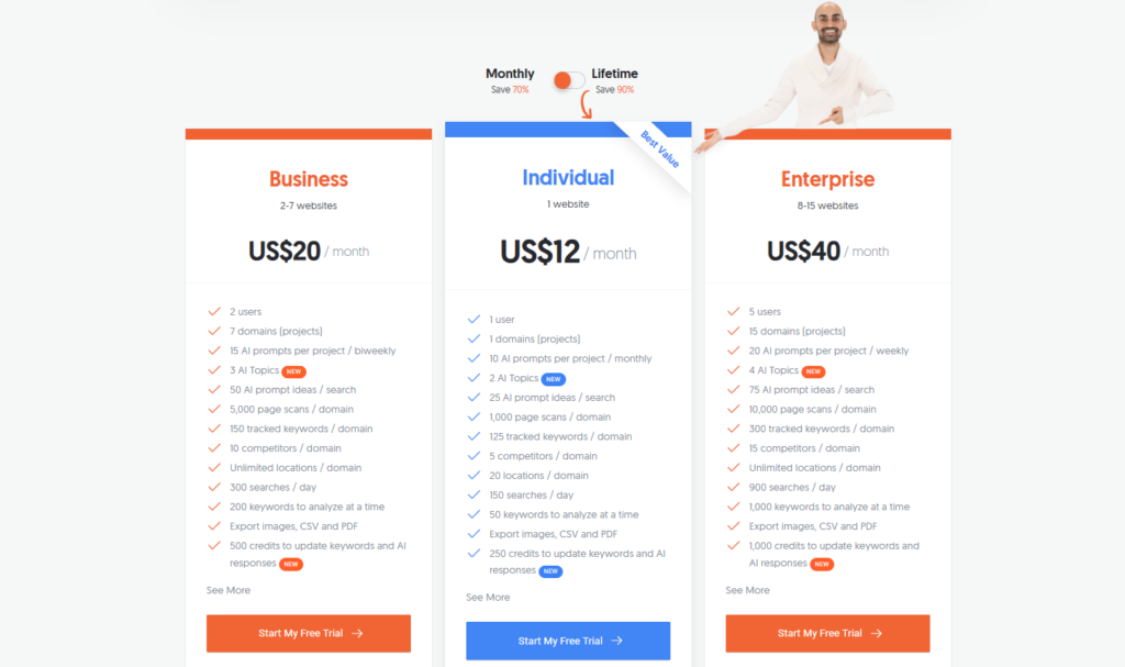 Ubersuggest comes with several pricing tiers, each tailored to different levels of need. Whether you are a solo entrepreneur or running a full-scale agency, there’s likely a plan that fits the bill.
